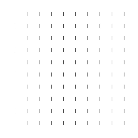 The groupings may be less easy to discern but they are still noticeable and distinct. As a third example, consider the retinal variable of orientation. The data is still the same but the point implantation is not encoded using vertical lines, and I shift the angle of line to form groupings: