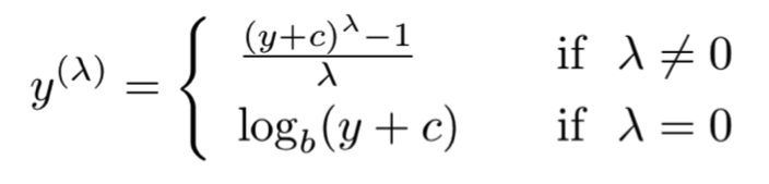 The Box and Cox (1964) transformations are based on the optimisation idea of setting zero skewness by finding the suitable power λ and scalar c from the following objective function: