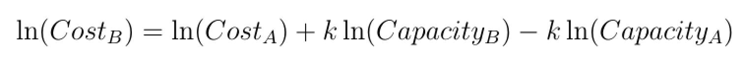 Log-transformations also help linearise multiplicative relations. An example of this property is offered in the analysis of Greenhouse gas emissions per capita. As another example consider the power-sizing model that is sometimes used for obtaining an idea of the cost estimates of new industrial plants and equipment relative to the cost of existing comparable projects. The power sizing model is a multiplicative relation that is described as follows: