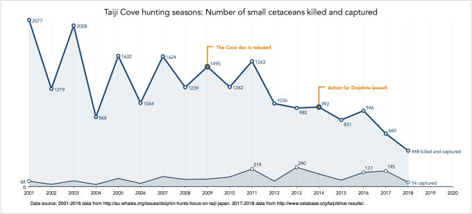 The analysis on Taiji Cove Drive Hunt provides such an example, whereby all data values are directly identified as part of the plot:
