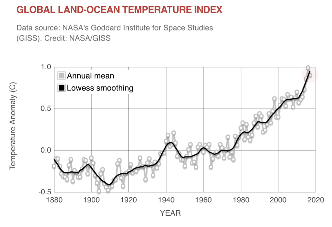 On the contrary, here is a high accuracy graph from NASA using the same data as above, clearly showing the exponential increase in global temperature especially from 1950 onwards:
